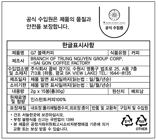 | 포장단위별 내용물의 용량(중량), 수량 | 30g(2gx 15개입) | 원재료명 및 함량 | 컨텐츠 참조 |