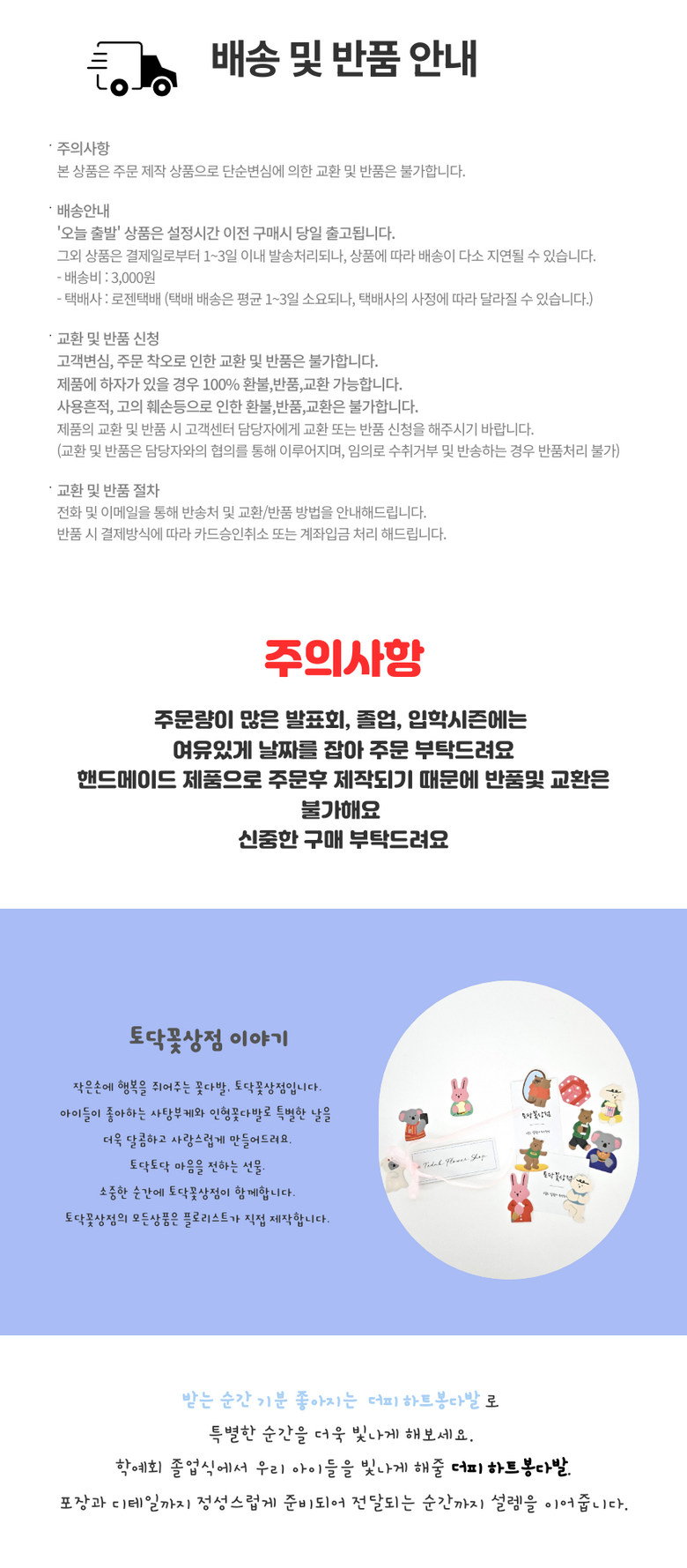 | 제조국(원산지) | 국산 | 제조자(수입자) | 제조자:토닥꽃상점 |