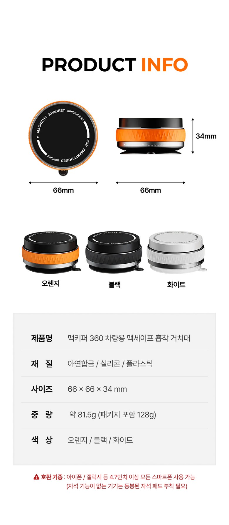 | 품명 및 모델명 | 맥키퍼360 차량용 맥세이프 흡착 거치대 | 동일모델 출시년월 | 2025년 1월 |