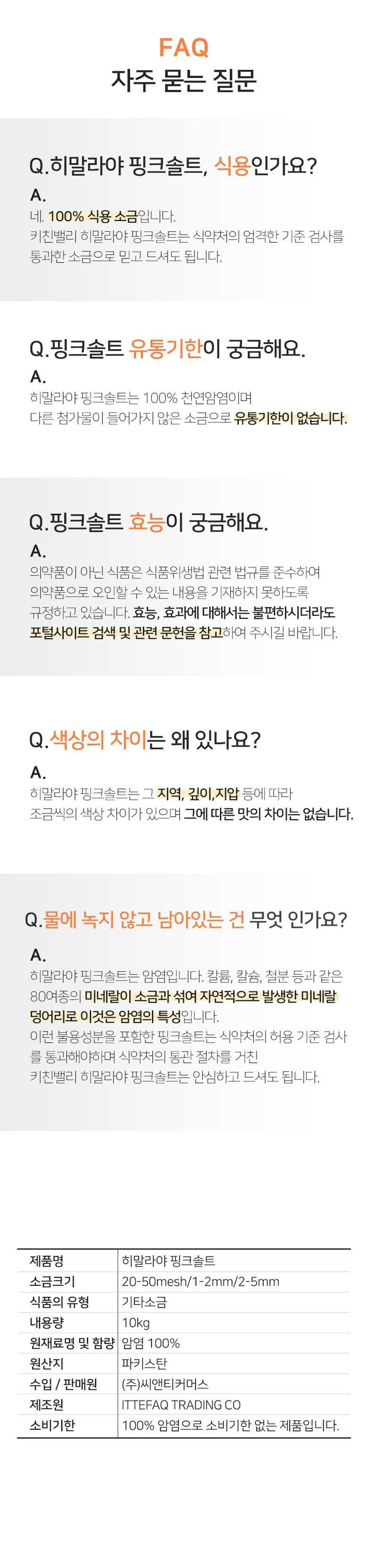 | 품명 및 모델명 | 키친밸리 히말라야 핑크솔트 대용량 암염 10kg | 인증/허가 사항 | 해당사항없음 |