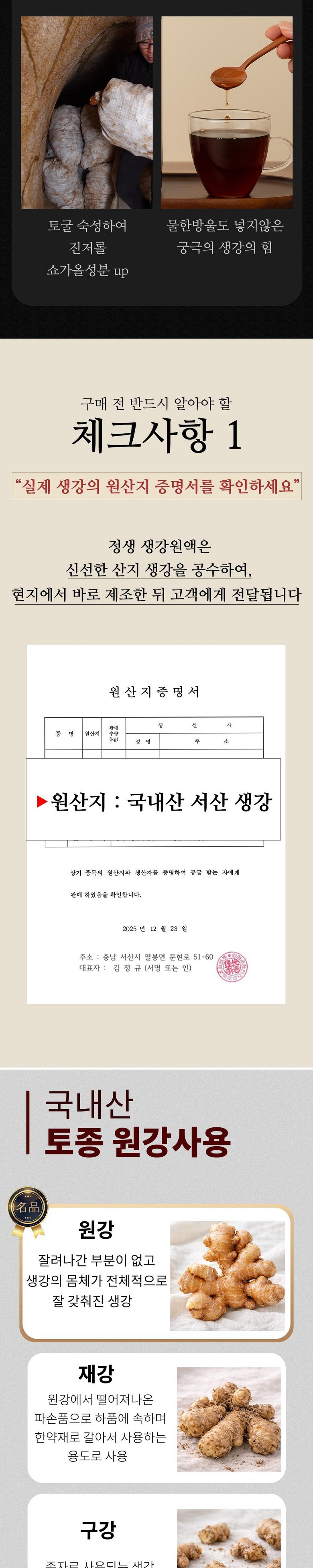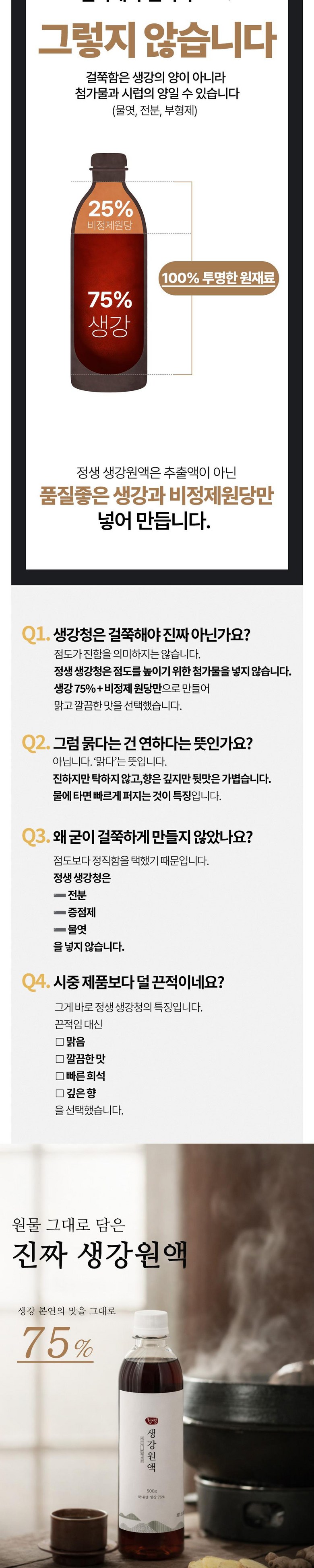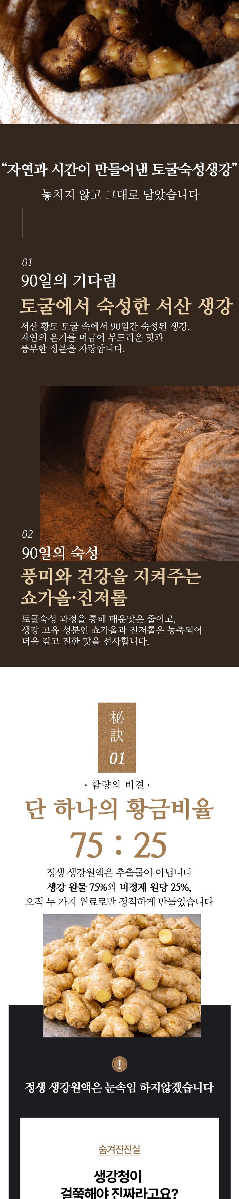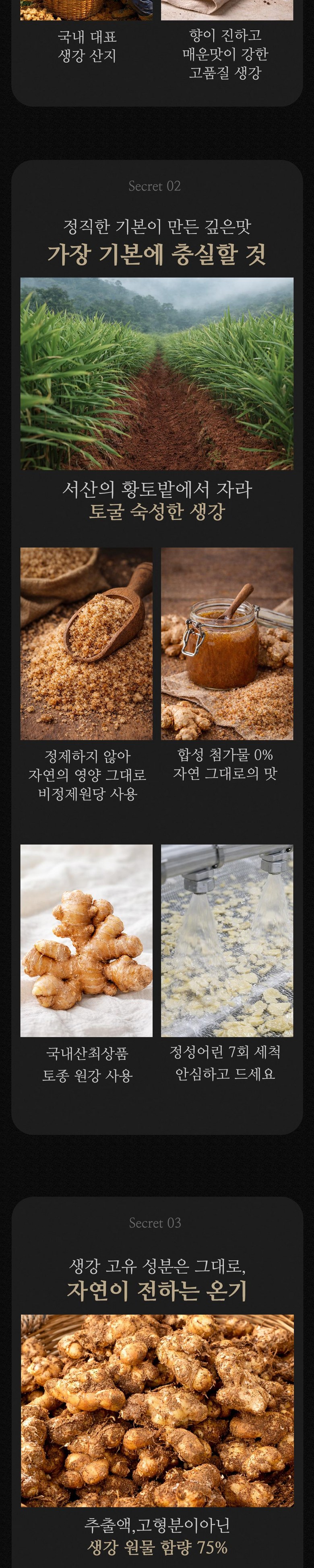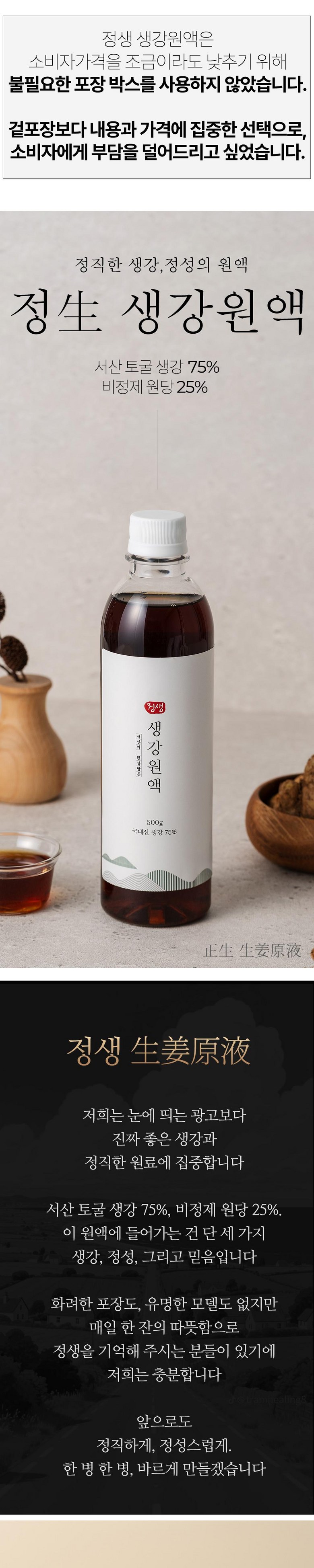 | 포장단위별 내용물의 용량(중량), 수량 | 상품 상세페이지 참조 | 원재료명 및 함량 | 생강 75%, 비정제원당 25% |