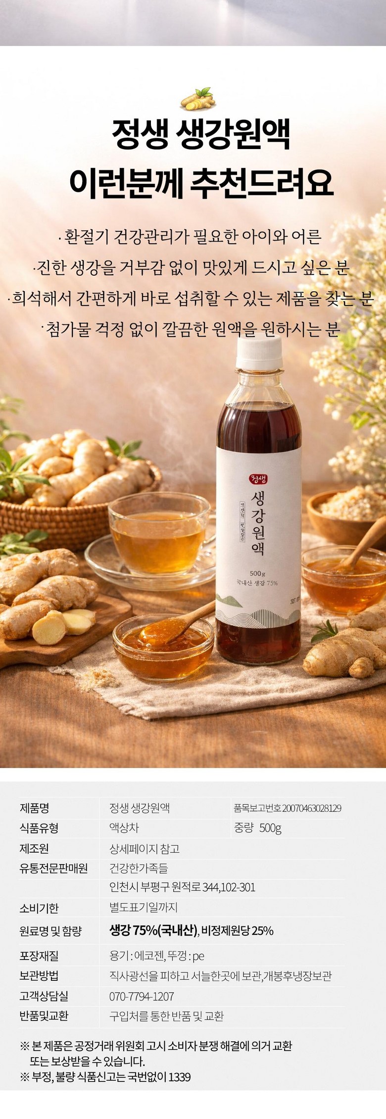 | 제품명 | 정생생강원액 | 식품의 유형 | 상품 상세페이지 참조 |