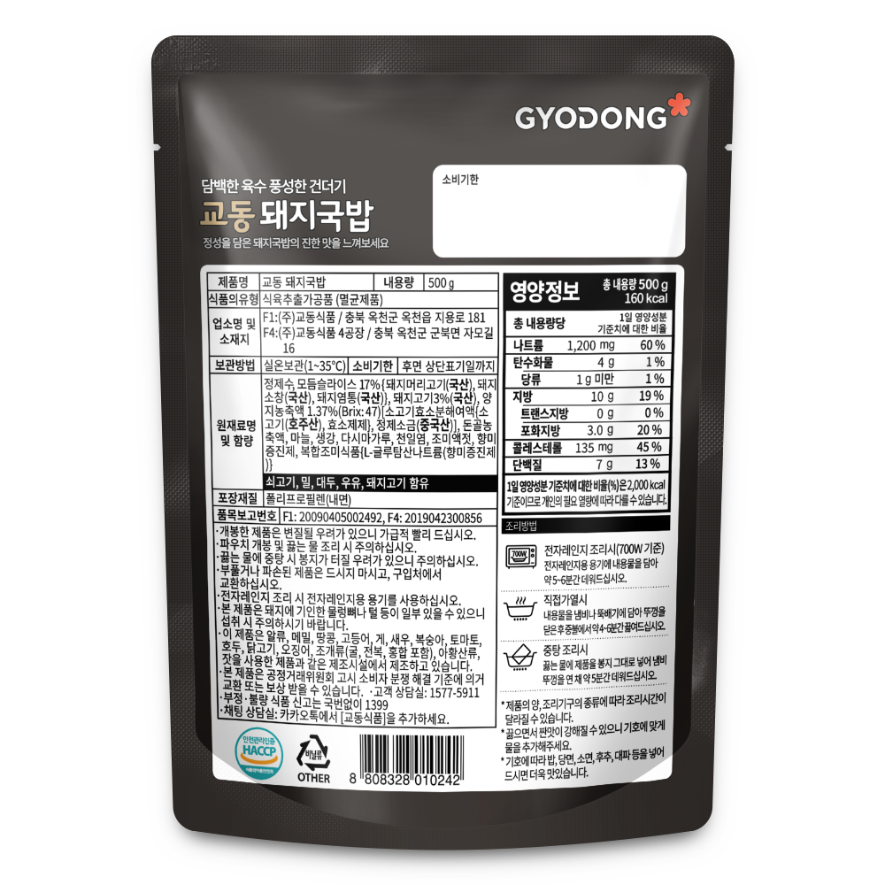 | 포장단위별 내용물의 용량(중량), 수량 | 500g x 3개 | 원재료명 및 함량 | 컨텐츠 참조 |