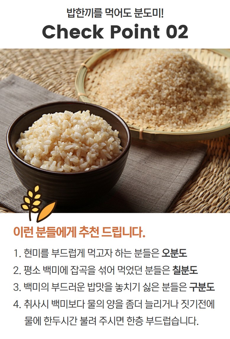 | 생산자(수입자) | 현미가공 : 재양미곡처리장 / 분도가공 : 농업회사법인 열정농산(주) | 원산지 | 국산 |