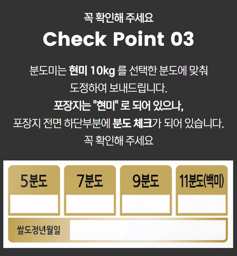 | 품목 또는 명칭 | 수향미 칠분도쌀 | 포장단위별 내용물의 용량(중량),수량,크기 | 10kg |