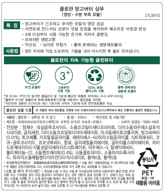 | 화장품제조업자, 화장품책임판매업자 및 맞춤형화장품판매업자 | 컨텐츠참조 | 제조국 | 프랑스 |