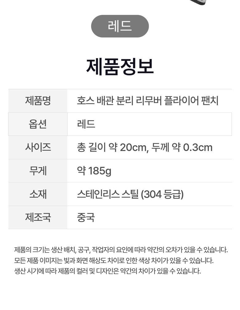 | 품명 및 모델명 | 호스 배관 분리 플라이어 팬치 | 인증/허가 사항 | 해당없음 |
