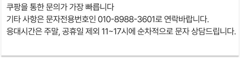 - 공개 게시판이므로 전화번호, 메일 주소 등 고객님의 소중한 개인정보는 절대 남기지 말아주세요.