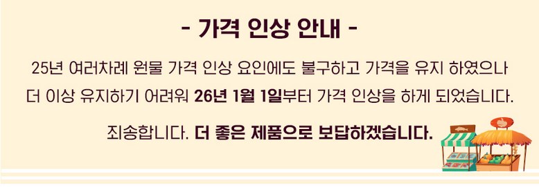 | 제조연월일, 소비기한 또는 품질유지기한 | 소비자 주문서 접수일을 기준으로 5일이내에 제조된 상품만 판매합니다./소비기한:제조일로부터 1년 | 세부 품목군별 표시사항 | 해당사항없음 |