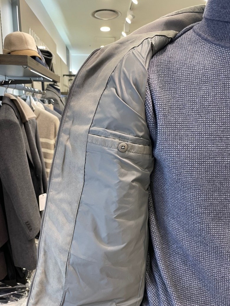 -소매에 보온성이 우수한 울혼방 소재를 사용하고 하찌짜임으로 보온성을 더한 스타일