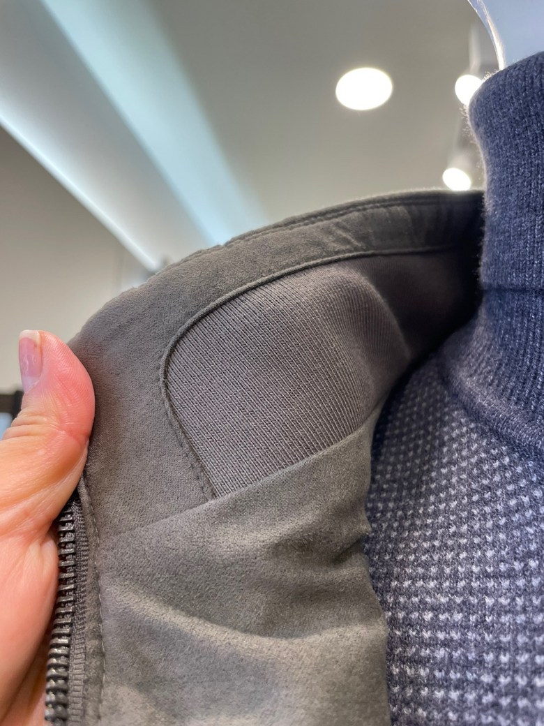 -에리이면에 니트를 덧대어 소재 특유의 마찰을 보완