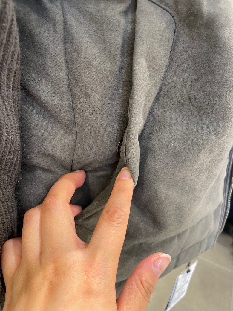 -앞판 변형된 퀼팅 디자인으로 가치를 더하고 허리주머니 부위 히든스냅 디테일로 포켓 사용시
