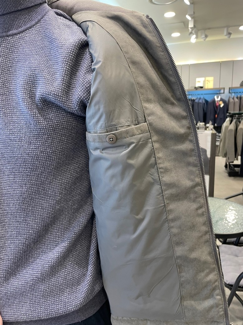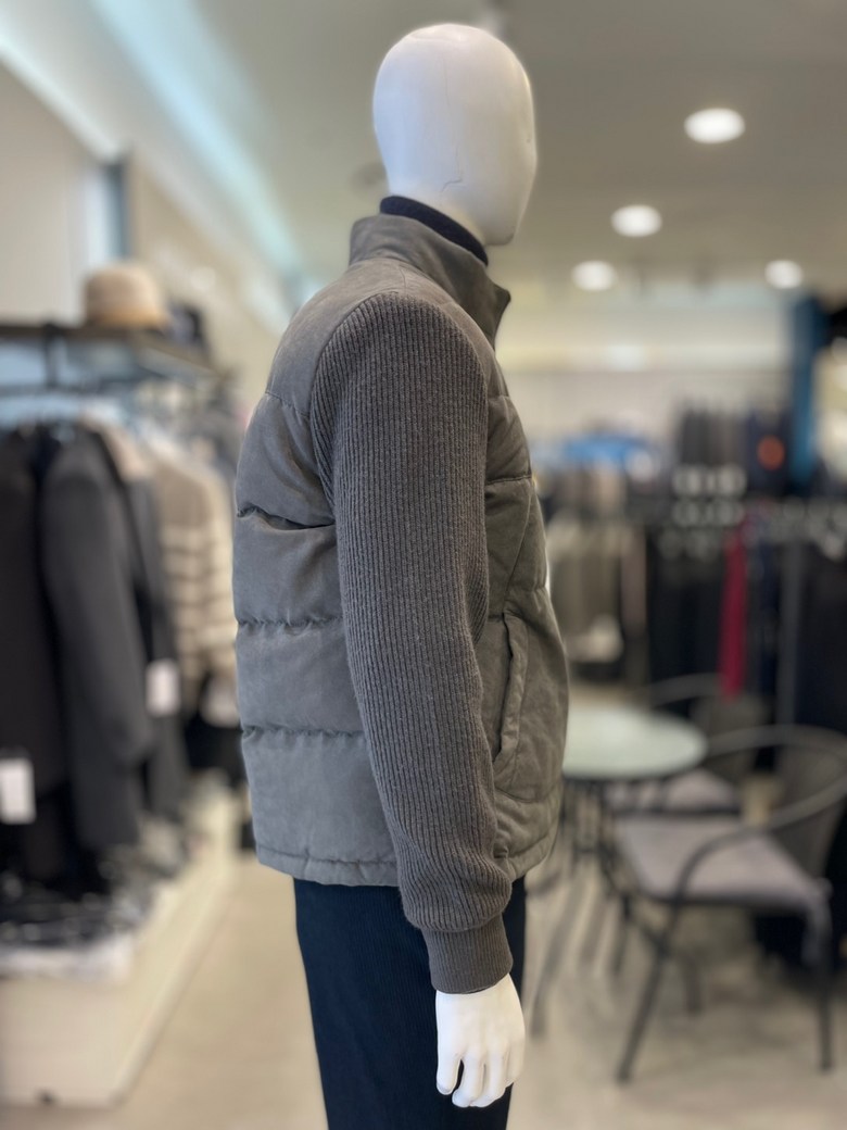 -스웨이드소재에 소매 니트를 믹스하여 캐주얼함이 더해진 블루종