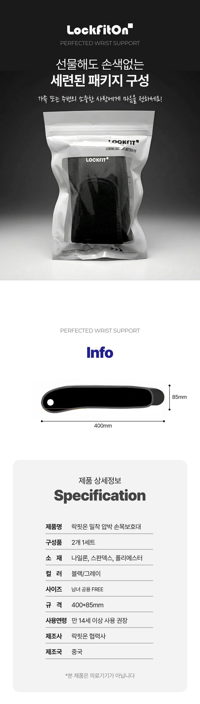 | 품명 및 모델명 | 락핏온 밀착 압박 손목보호대 | KC 인증정보 | 해당없음 |