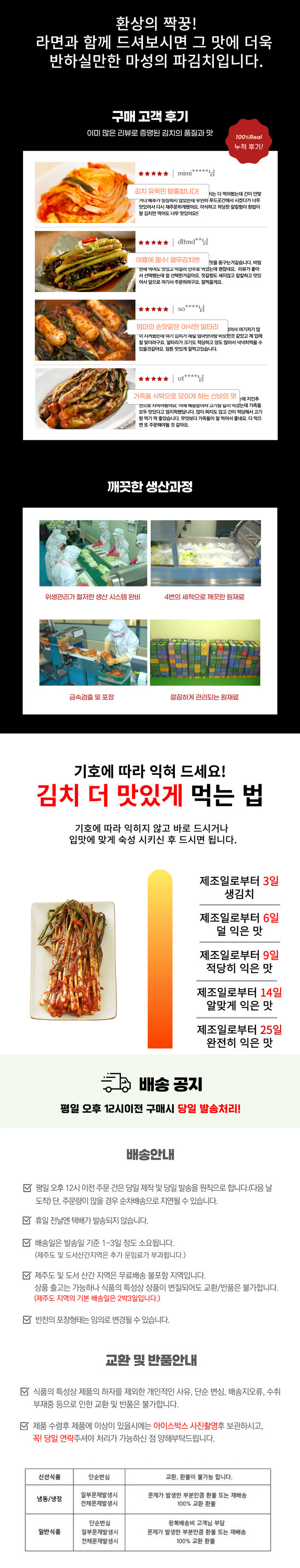 | 품목 또는 명칭 | 파김치 | 포장단위별 내용물의 용량(중량),수량,크기 | 상품 상세페이지 참조 |