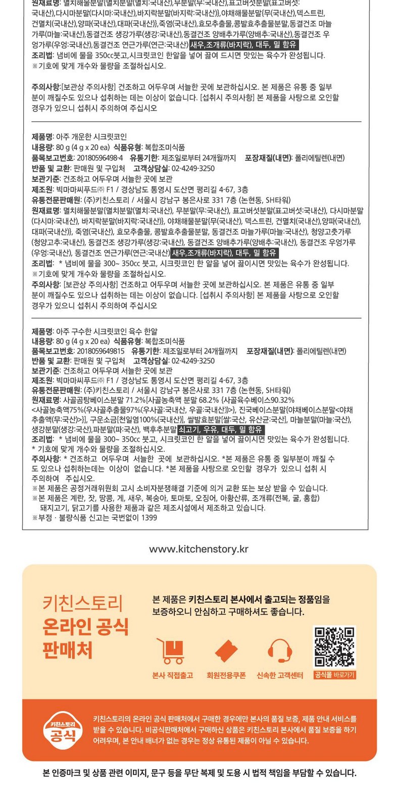 | 제조연월일, 소비기한 또는 품질유지기한 | 상품 상세페이지 참조 | 세부 품목군별 표시사항 | 상품 상세페이지 참조 |