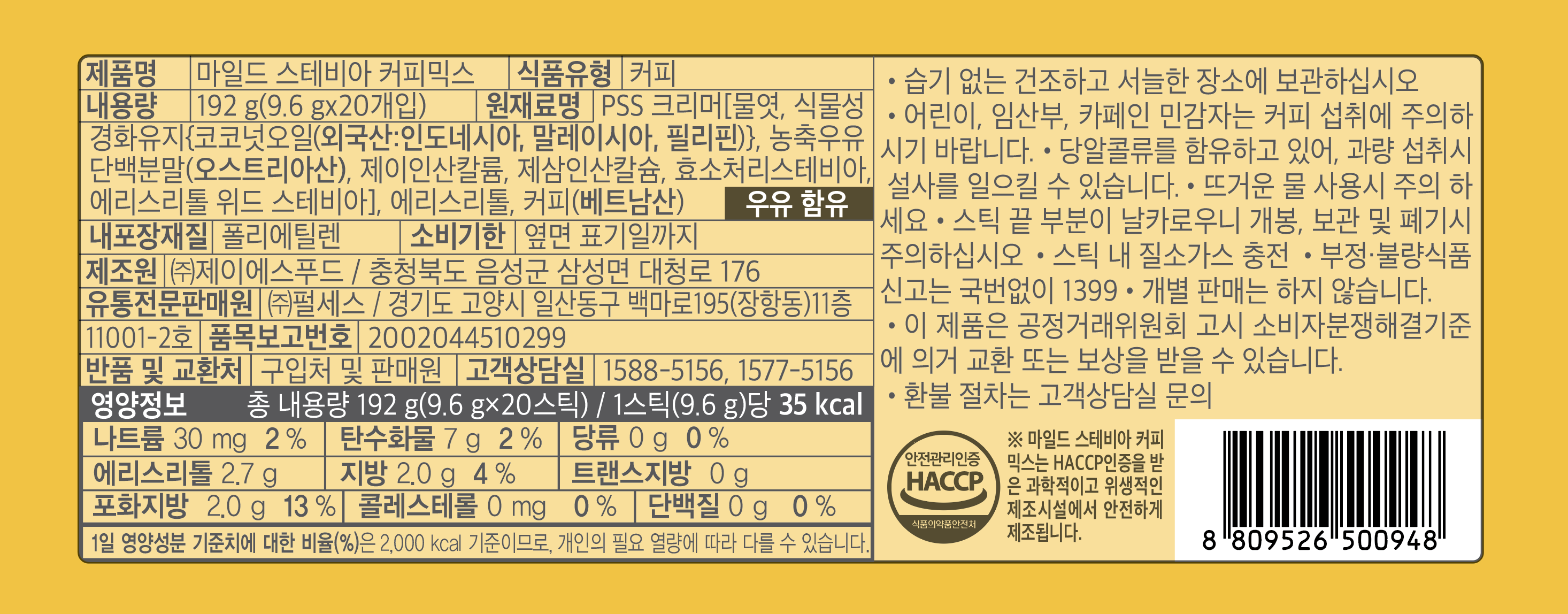 | 포장단위별 내용물의 용량(중량), 수량 | 20개입 x 4개 | 원재료명 및 함량 | 컨텐츠 참조 |