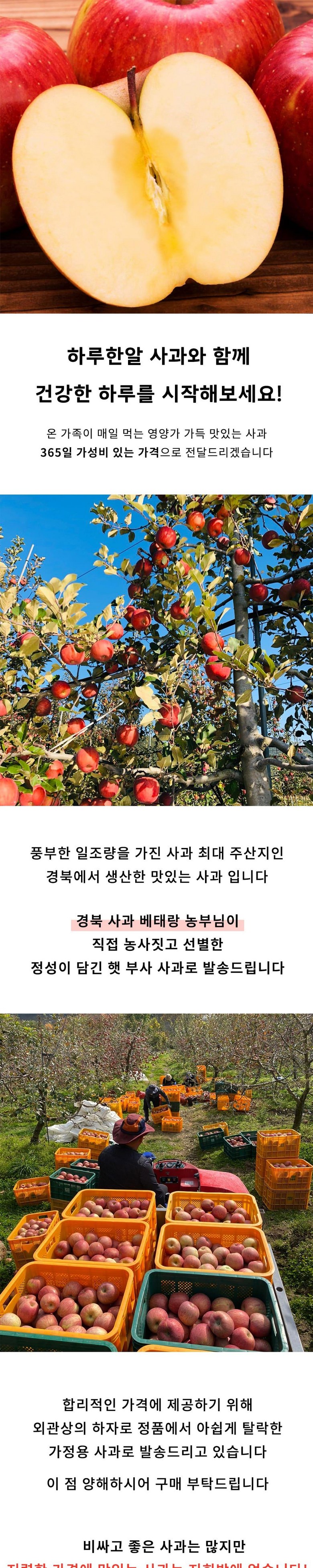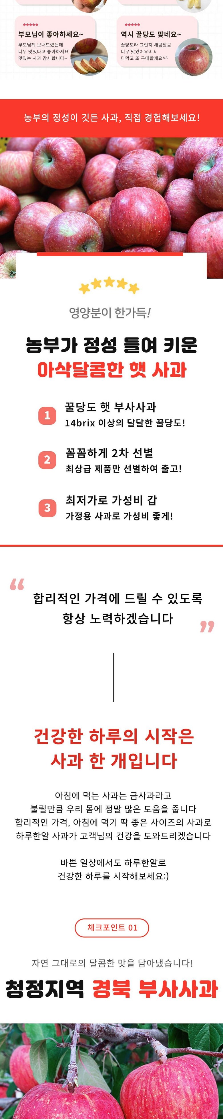 | 품목 또는 명칭 | 재구매율높은 맛있는 고당도 국내산 사과 | 포장단위별 내용물의 용량(중량),수량,크기 | 1kg, 2kg, 3kg, 5kg |
