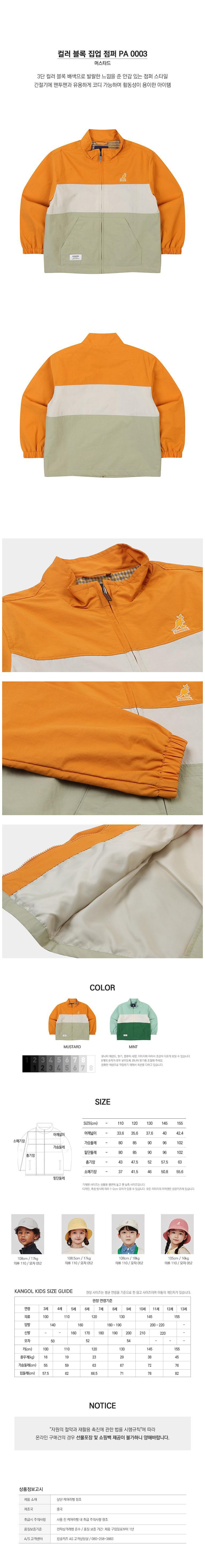 | 품명 및 모델명 | 컬러 블록 집업 점퍼 | KC 인증정보 | 유/KC마크 |