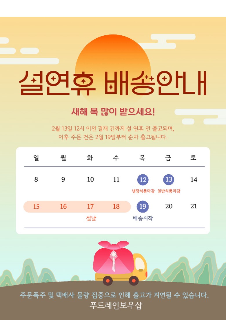 | 배송방법 | 순차배송 | 배송비 | 무료배송 - 도서산간 지역 배송불가 |