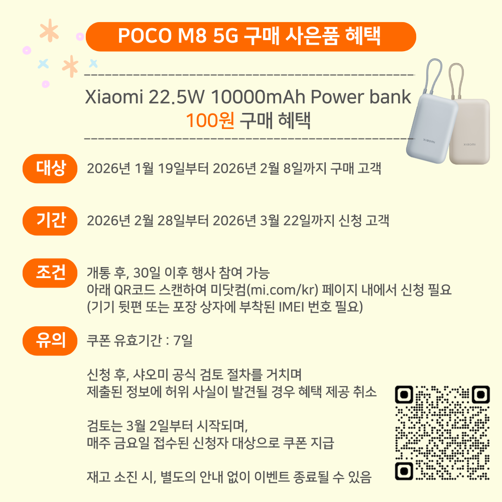 | 출시년월 | 2026.01 | 제조자(수입자) | Xiaomi Communications Co., Ltd. / 샤오미테크놀로지코리아 유한책임회사 |