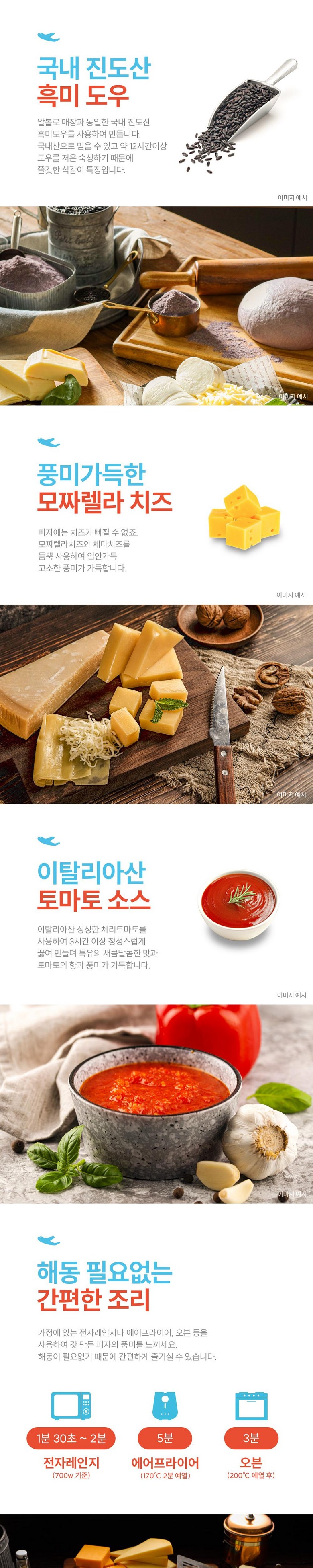 | 포장단위별 내용물의 용량(중량), 수량 | 상품 상세페이지 참조 | 원재료명 및 함량 | 오리지널 도우 흑미 [밀가루1(밀:미국산,캐나다산), 밀가루2(밀:미국산), 흑미, 알티보 포머스 오일, 백설탕], 알볼로 피자 치즈 [모짜렐라 79%(뉴질랜드산), 에그몬트 10%(뉴질랜드산), 고다 10%, 혼합제제] 외 |