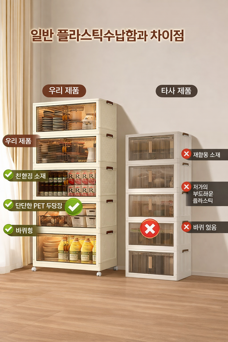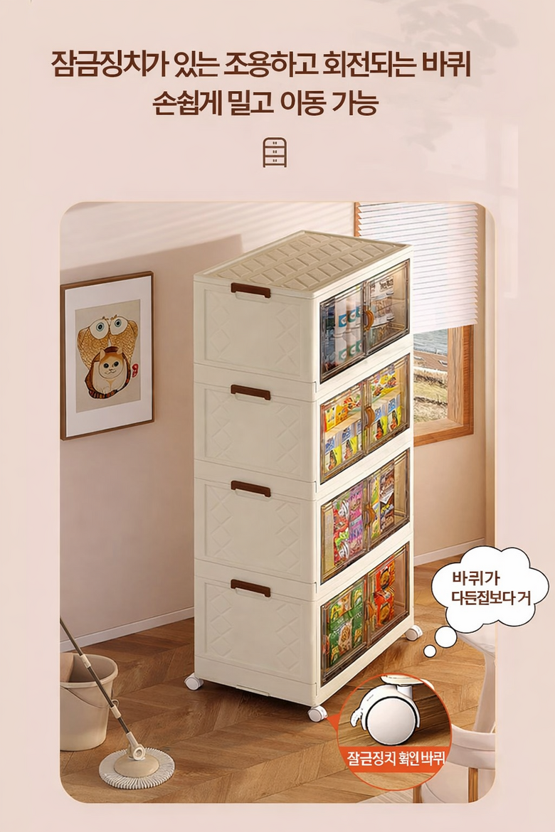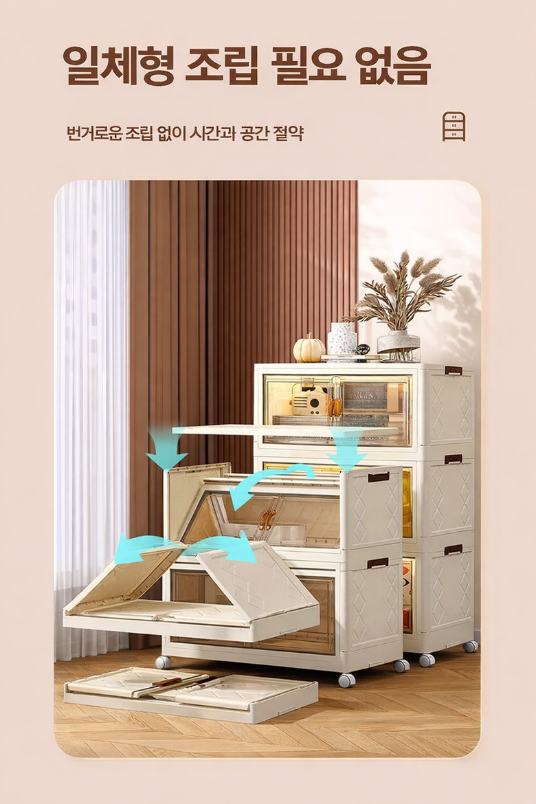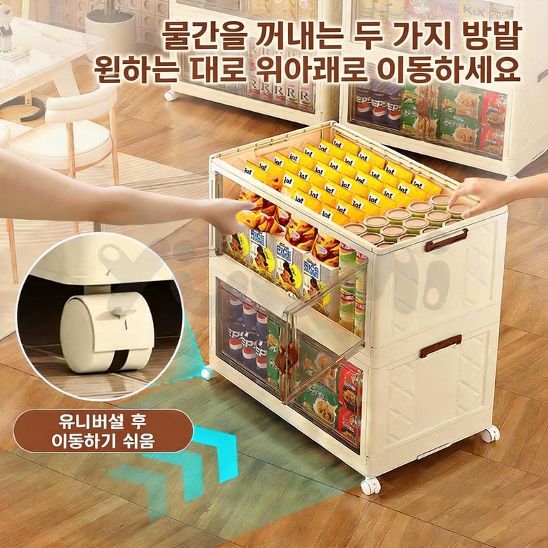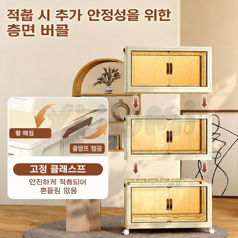 대용량 모듈형 리빙박스 가정용 다용도 이동식 폴딩 수납함