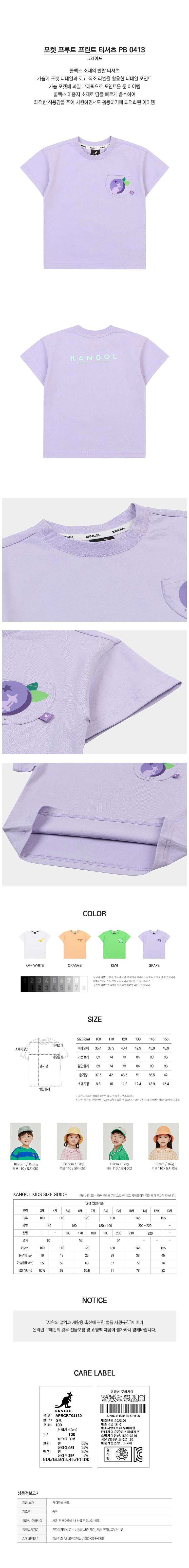 | 품명 및 모델명 | 포켓 프루트 프린트 티셔츠 PB 0413 그레이프 100 | KC 인증정보 | 유/KC마크 |