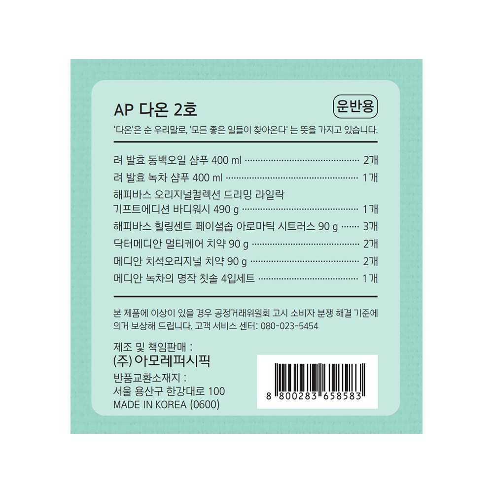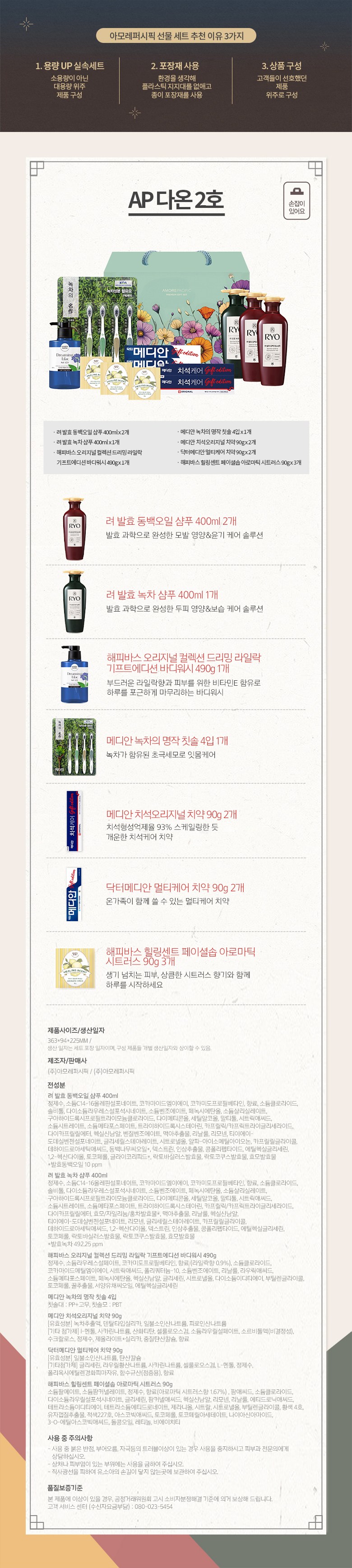 | 사용기한 또는 개봉 후 사용기간 | 본 상품은 해당 물류센터 직발송 상품인 관계로 제조연월일 및 사용기한 정보가 매번 변경되므로 상단 사용기한 정보를 참고해 주세요. | 사용방법 | 샴푸, 바디워시 : 컨텐츠 참조 / 비누 : 거품을 충분히 내서 마사지하듯 문지른 후 물로 깨끗이 헹구세요. |