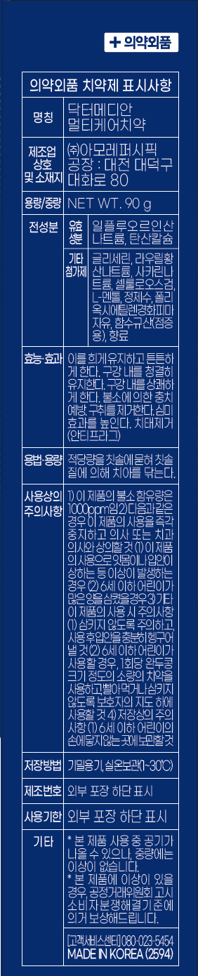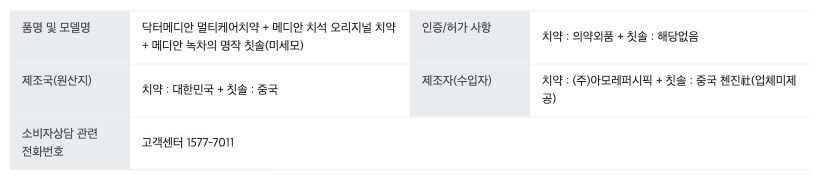 | 화장품제조업자, 화장품책임판매업자 및 맞춤형화장품판매업자 | 컨텐츠 참조 | 제조국 | 대한민국 |