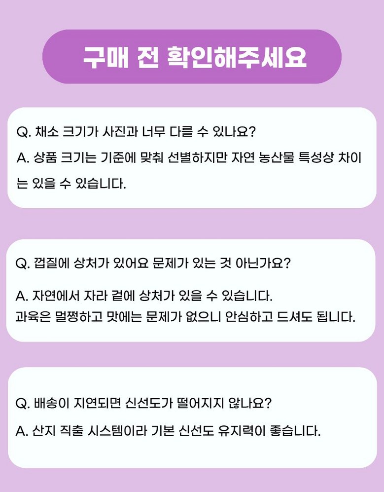 | 배송방법 | 신선/냉장/냉동 | 배송비 | 무료배송 - 도서산간 지역 배송불가 |