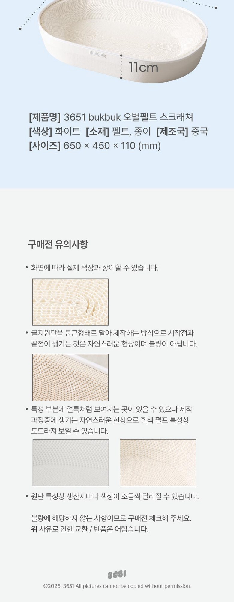 - ㆍ모니터 해상도의 차이로 인해 색상이나 이미지가 실제와 달라, 고객이 단순 변심으로 교환/반품을 무료로 요청하는 경우