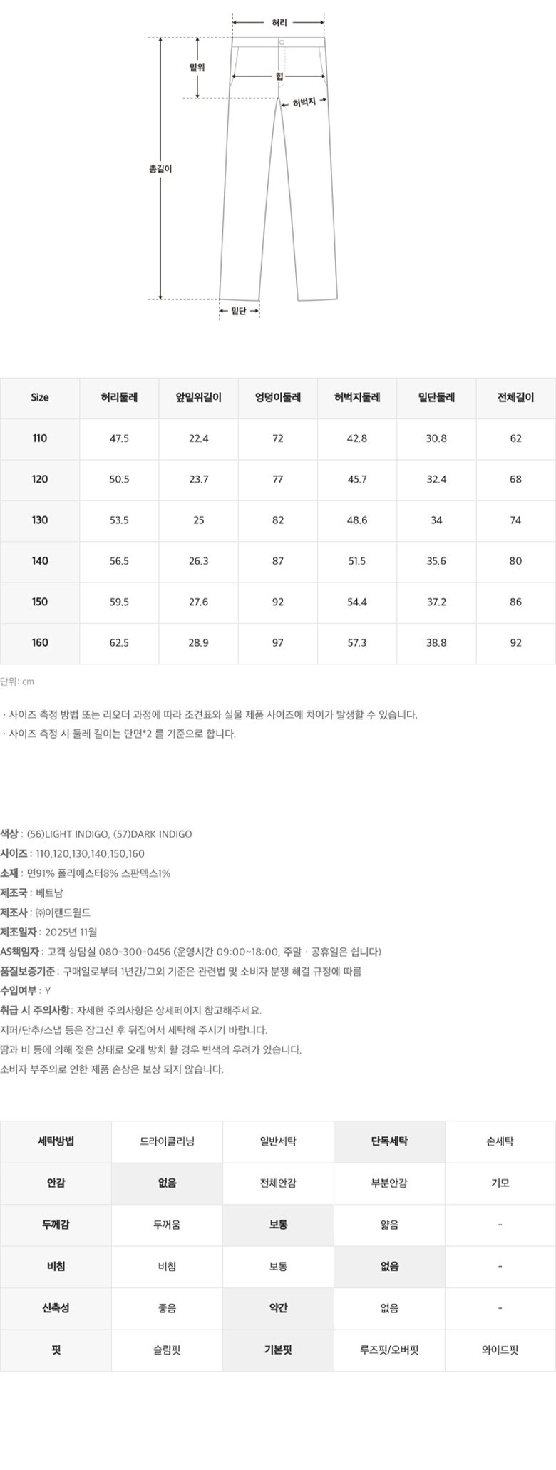 | 품명 및 모델명 | [키즈] 스트레이트 진, (56)Light Indigo, 150 | KC 인증정보 | 유/KC마크 |