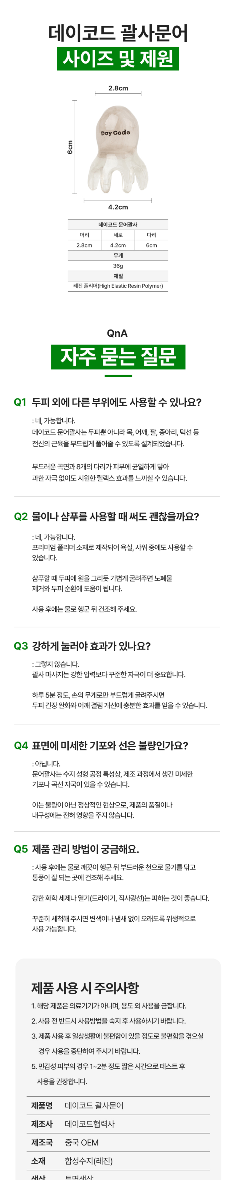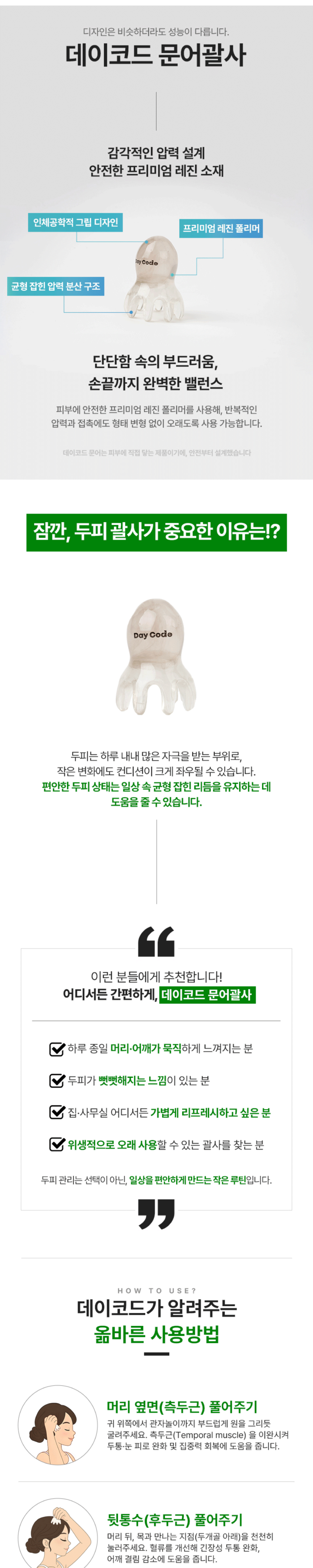 | 품명 및 모델명 | 데이코드 미니 문어 괄사 두피 마사지기 머리 승모근 지압 마사지 | 인증/허가 사항 | 상품 상세페이지 참조 |