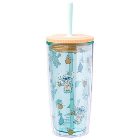 실버 Buffalo 디즈니 릴로와 스티치 쿨 선글라스 Just Chill 플라스틱 보바 텀블러 뚜껑과 빨대 포함 709.8ml(24온스)_155115