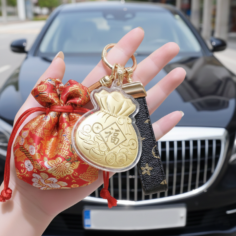 카라몰리 재물복 복주머니 키링 자동차 가방 악세사리, 화이트, 1개