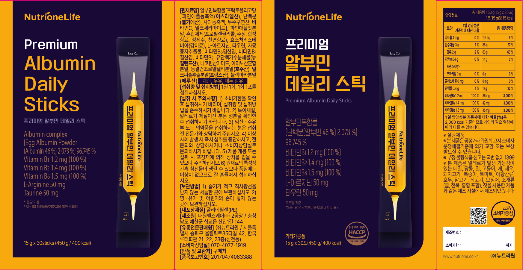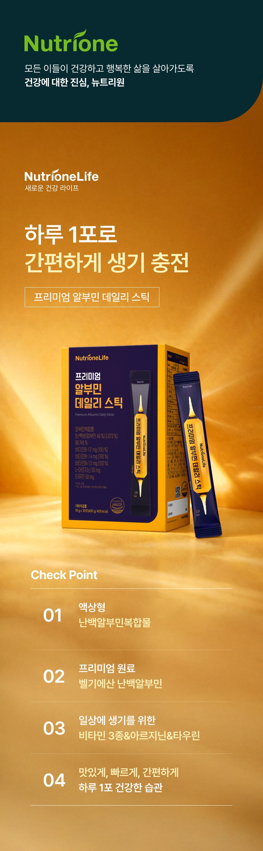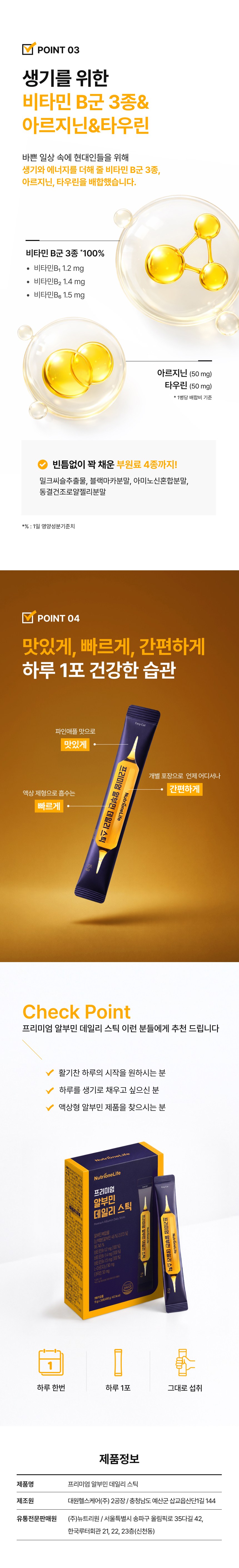 | 제품명 | 프리미엄 알부민 데일리 스틱 | 식품의 유형 | 컨텐츠 참조 |