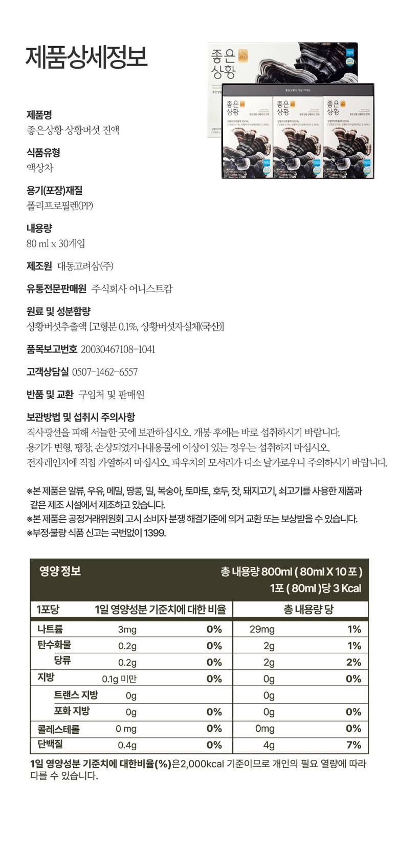 | 제품명 | 상품 상세페이지 참조 | 식품의 유형 | 상품 상세페이지 참조 |