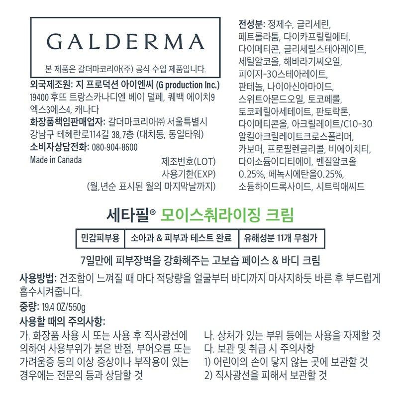 | 용량(중량) | 550g | 제품 주요 사양 | 모든 피부용 |