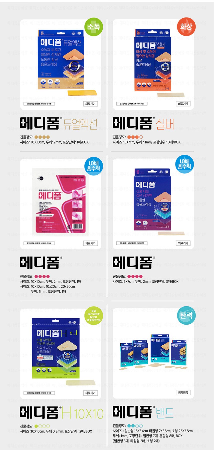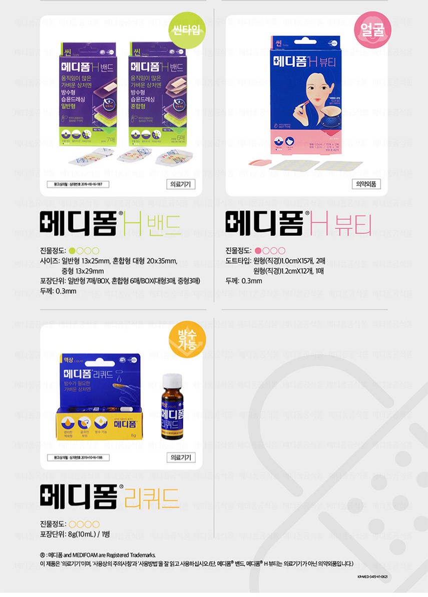 | 품명 및 모델명 | 메디폼밴드 | 인증/허가 사항 | 의약외품 |