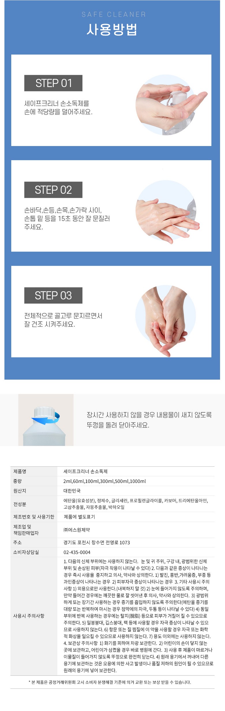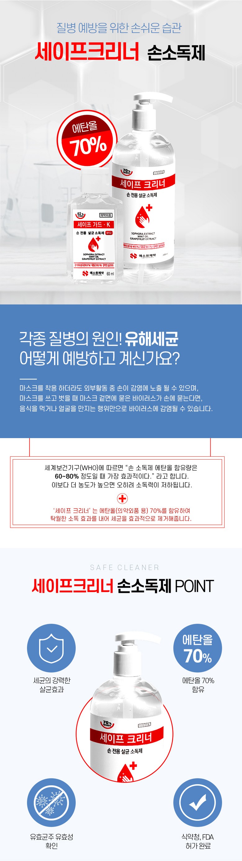 세이프프로텍트케이 뿌리는 손소독제 손 전용 살균 소독제 에탄올70 에스원제약, 501ml, 1개