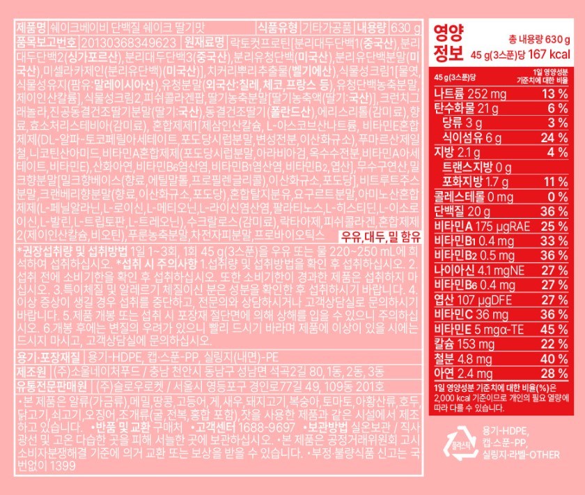 - 단백질 맛: 딸기