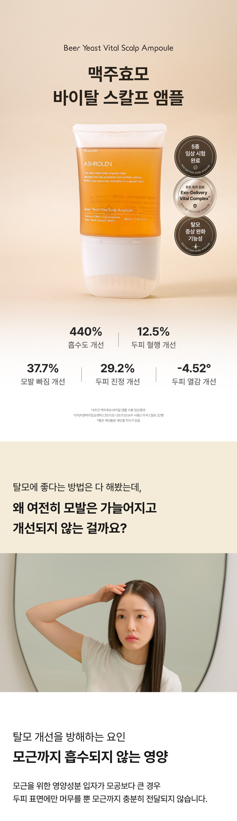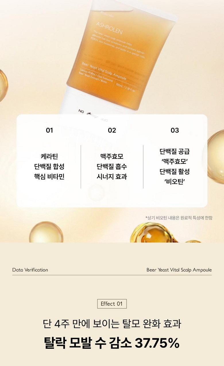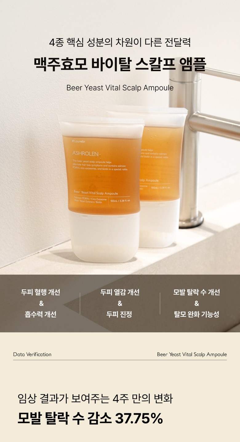 애쉬로렌 탈모 앰플 맥주효모 시카 엑소좀 두피 관리, 100ml, 1개