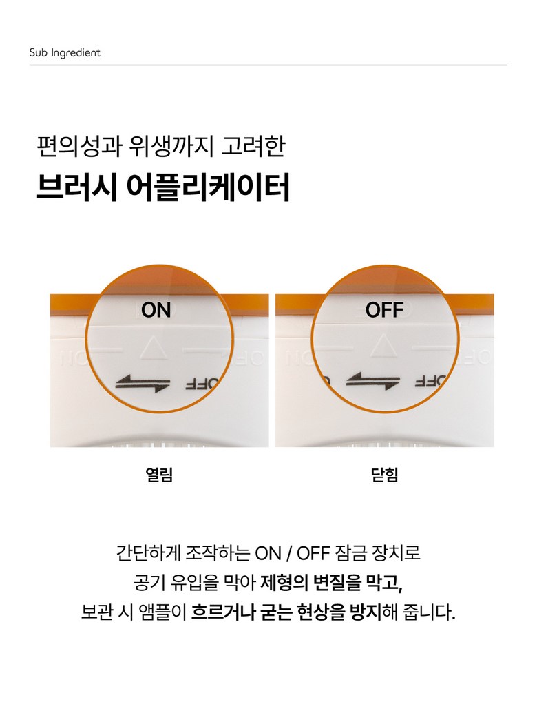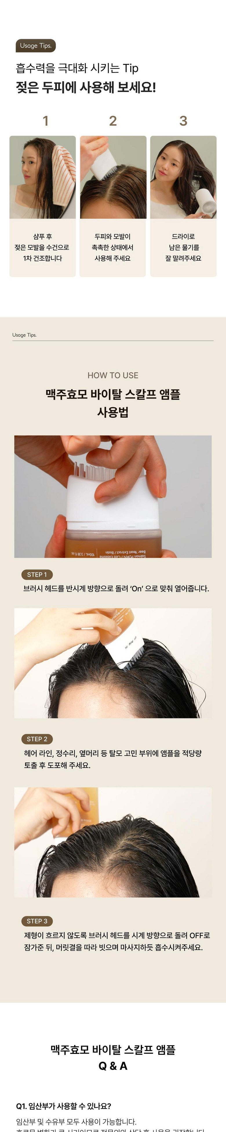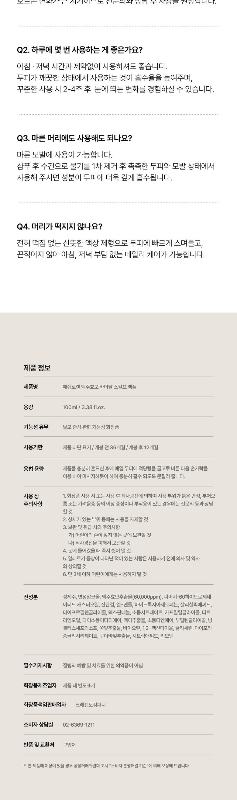 | 사용기한 또는 개봉 후 사용기간 | 개봉 전 36개월/개봉 후 12개월 | 사용방법 | 사용 전 브러시 헤드를 반시계 방향으로 돌려 열어줍니다. 1일 2회 고민 부위에 앰플을 적당량 도포하여 브러시로 마사지하듯 흡수시켜 줍니다. |