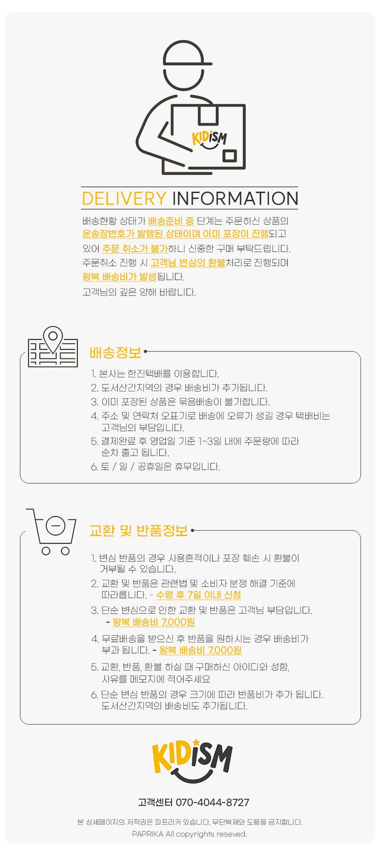 - ㆍ모니터 해상도의 차이로 인해 색상이나 이미지가 실제와 달라, 고객이 단순 변심으로 교환/반품을 무료로 요청하는 경우