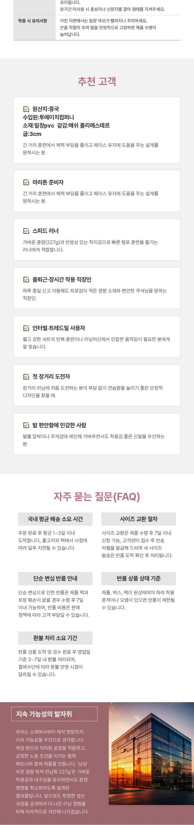 | 교환/반품 비용 (왕복비용) | 8,000원 - 단, 고객 변심의 경우에만 발생 - 도서산간 지역 배송불가 |