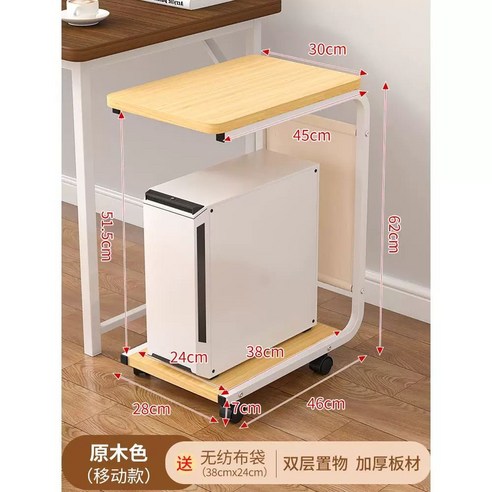 컴퓨터 본체 선반 원목 라운드 월넛 바퀴 스타일 블랙