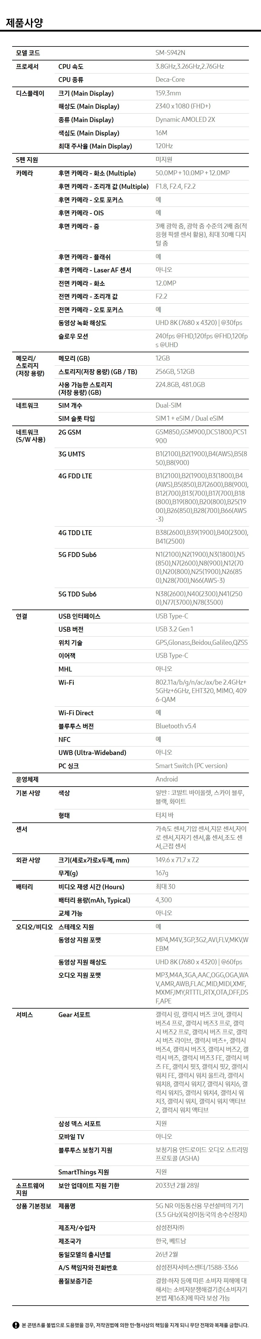 | 품명 및 모델명 | 휴대폰 / SM-S942N | KC 인증정보 | 유/KC마크, R-C-SEC-SMS942 |