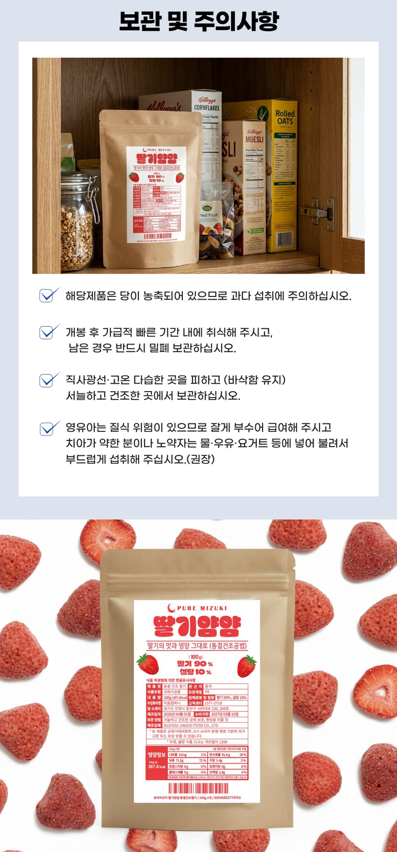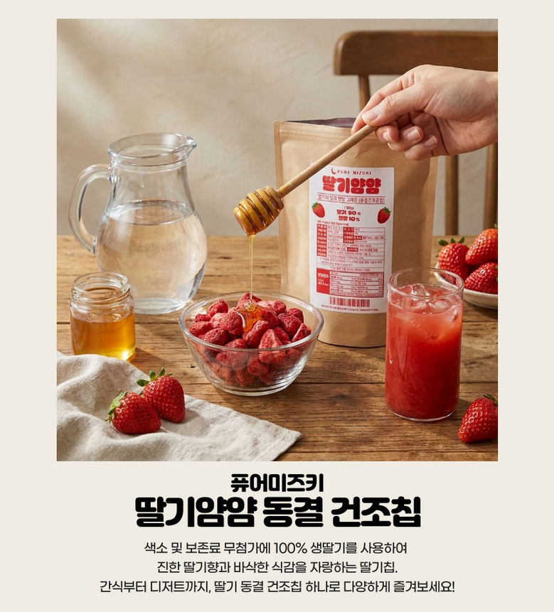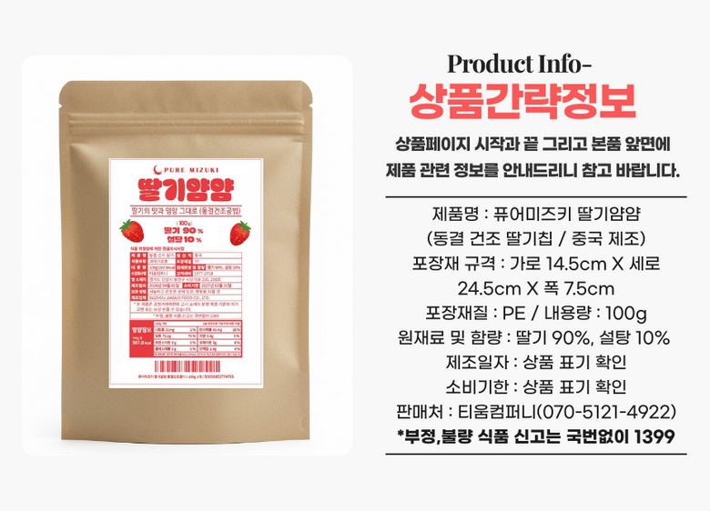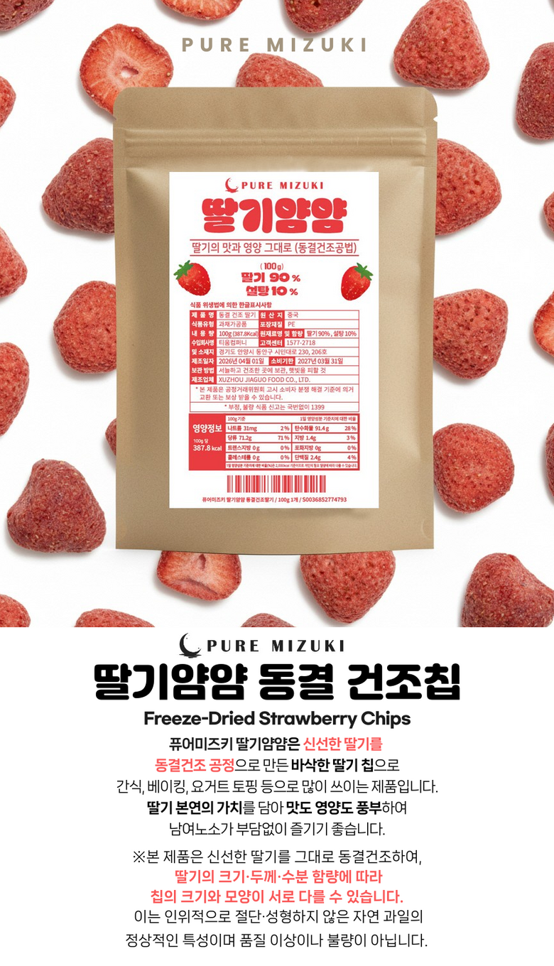 | 제품명 | 퓨어미즈키 동결 건조 딸기 과일칩 100g | 식품의 유형 | 과채가공품 |