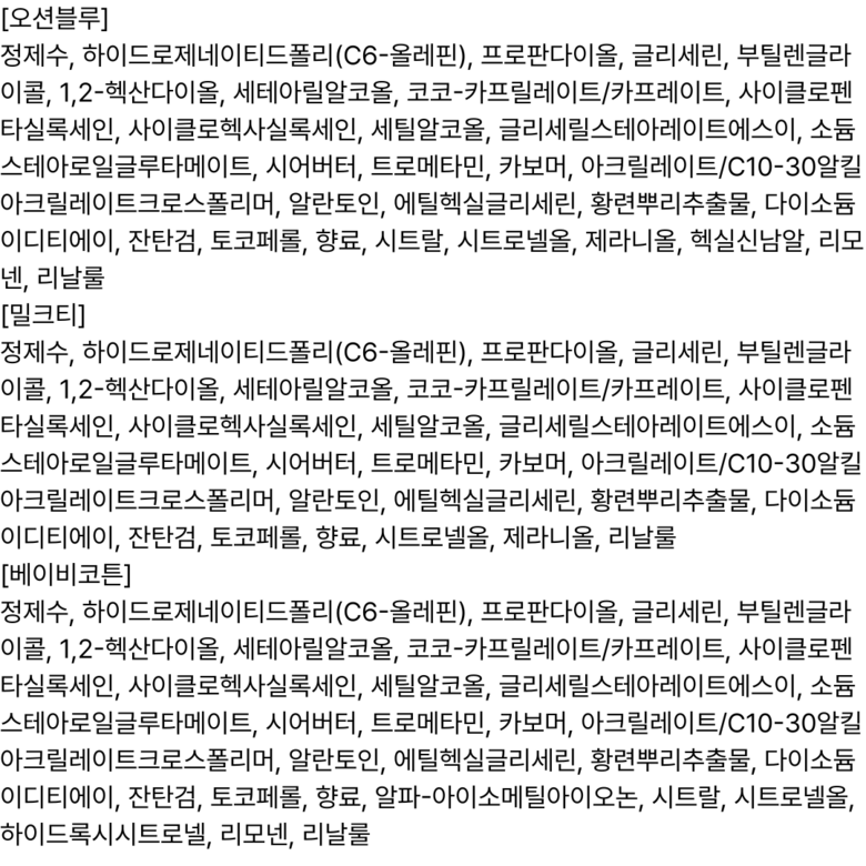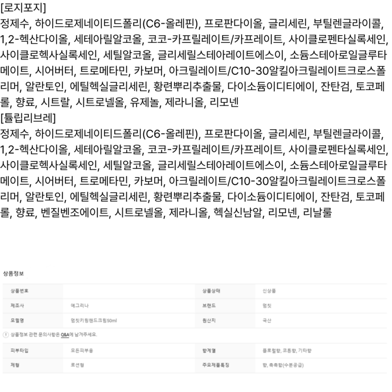 | 화장품제조업자, 화장품책임판매업자 및 맞춤형화장품판매업자 | 상품 상세페이지 참조 | 제조국 | 상품 상세페이지 참조 |